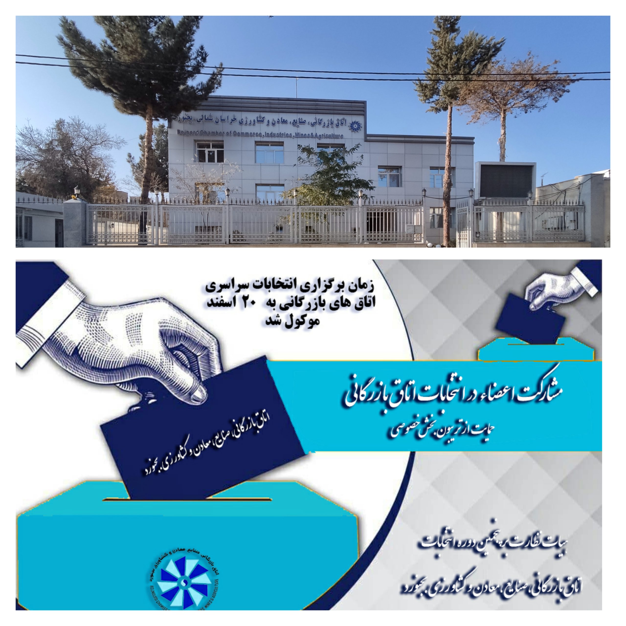 نتایج پنجمین دوره انتخابات هیات نمایندگان اتاق بازرگانی، صنایع و معادن و کشاورزی خراسان شمالی که از ساعت ۸ صبح