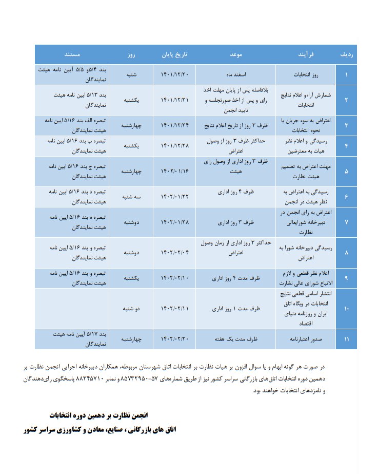 🔹دهمین دوره انتخابات هیات نمایندگان اتاقهای سراسر کشور با اتمام کار شورای عالی نظارت بر انتخابات، فهرست نهایی کاندیداهای این