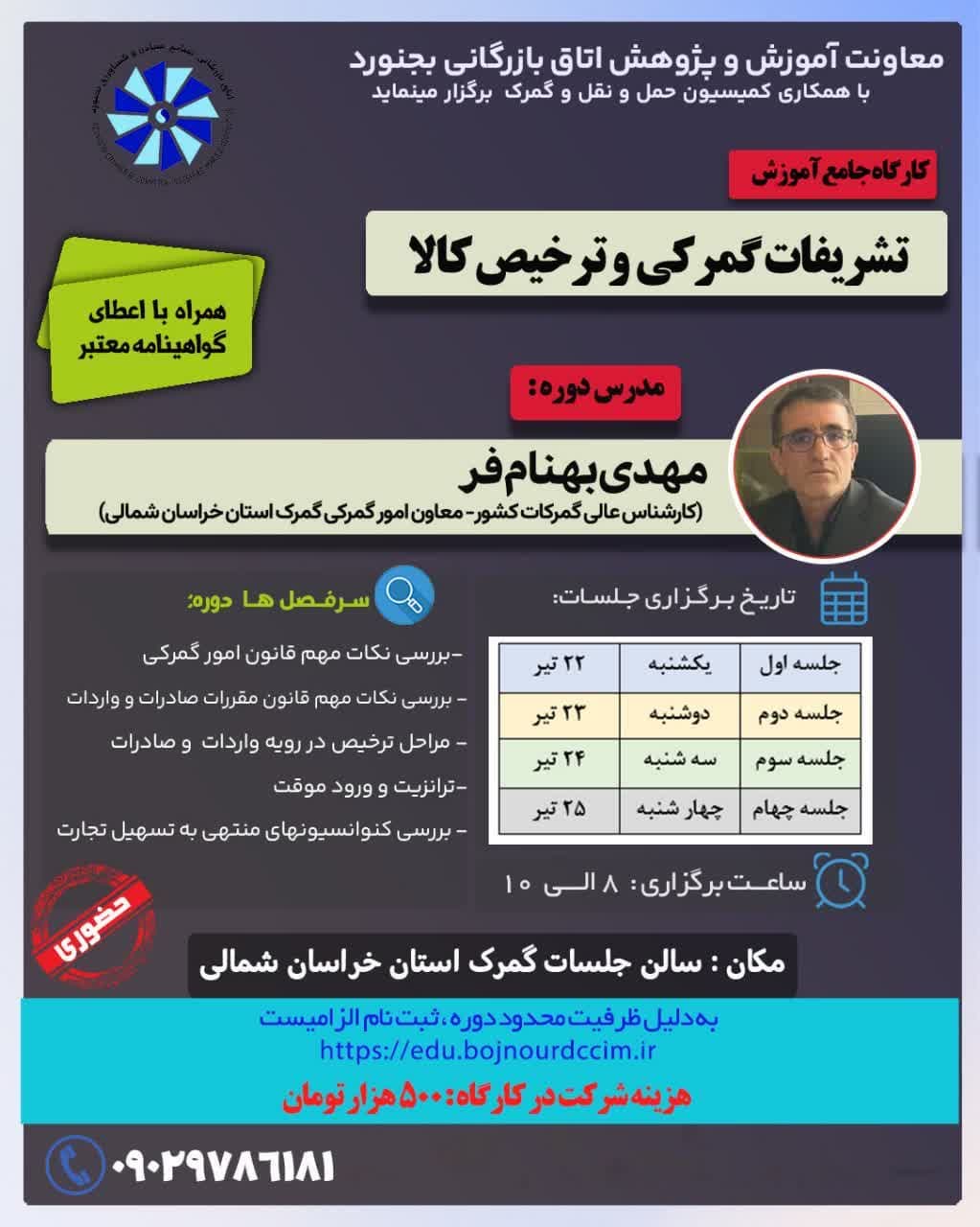 ” تشریفات گمرکی و ترخیص کالا“با تدریس جناب آقای بهنام فر، معاون امور گمرکی گمرک استان خراسان شمالی